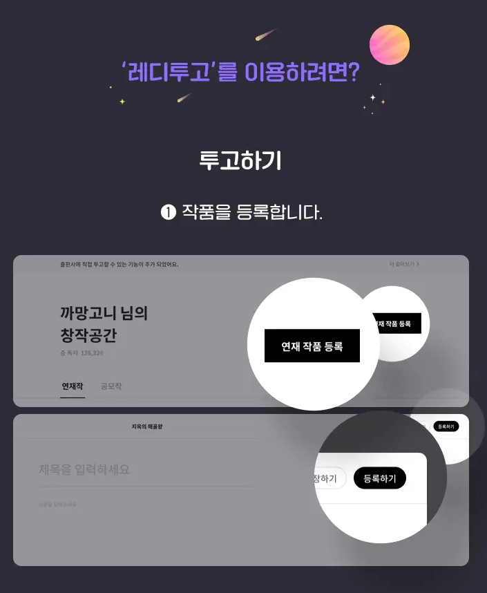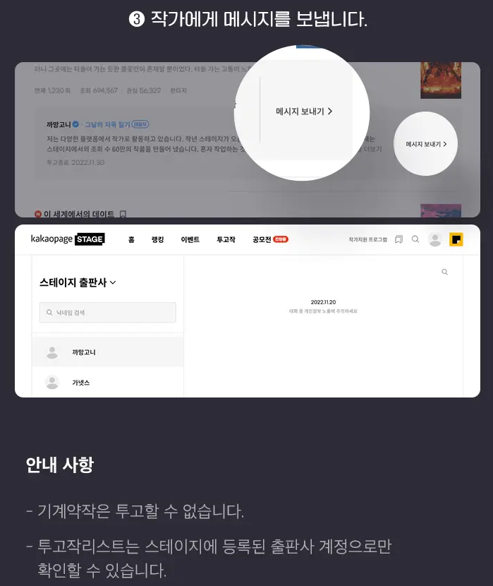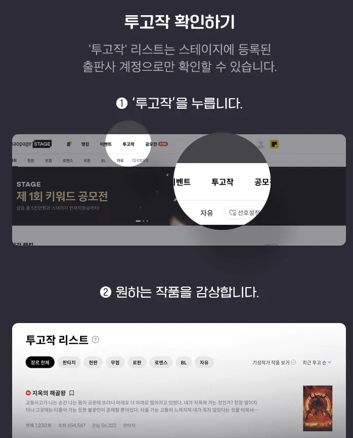 카카오스테이지에서 편하게 작품을 등록하면서, 투고하기 버튼을 통해서
