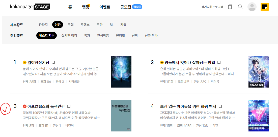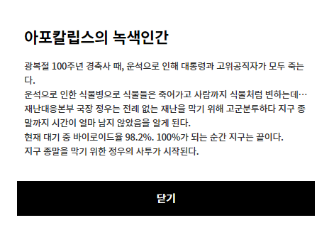 오랜만에 아포칼립스물이 상단에 있길래 도전해 봤는데...