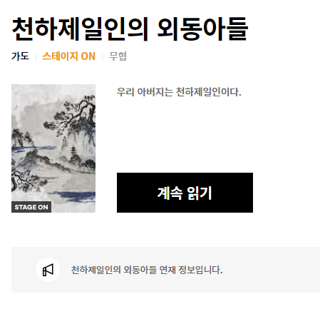 작품 소개도 엄청 심플하고, 표지도 그냥 일반적으로 카카오스테이지에서 제공하는 표지인데..