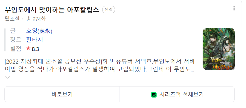 호영 작가님의 무인도에서 맞이하는 아포칼립스 작품 리뷰입니다.