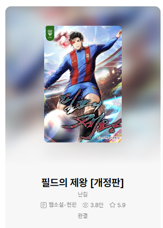 축구소설인데 그냥 너무 충공깽수준이라 중반부에서 접음. 뭔가 게임시스템을 이식받은 주인공 이면 그대로 가면 되는데 최초설정의한계인지 갑자기 중반부에 퀘스트 수행 등등을넣은 다른 게임이랑 뜬금없이 합쳐지고 하는게 뭔가 좀 아쉬웠다. 작가님 필력자체는 무난하게 타임킬링 하기엔 좋은느낌이었는데 다음...아니 다다음작품쯤 보면 재미있을 것 같은 느낌
