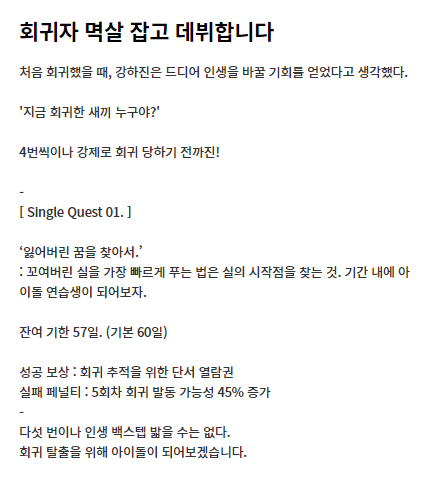 1. 나의 의지와 상관없이, 원하지 않은 시점에 마음대로 회귀가 되어버리는 주인공, 강하진