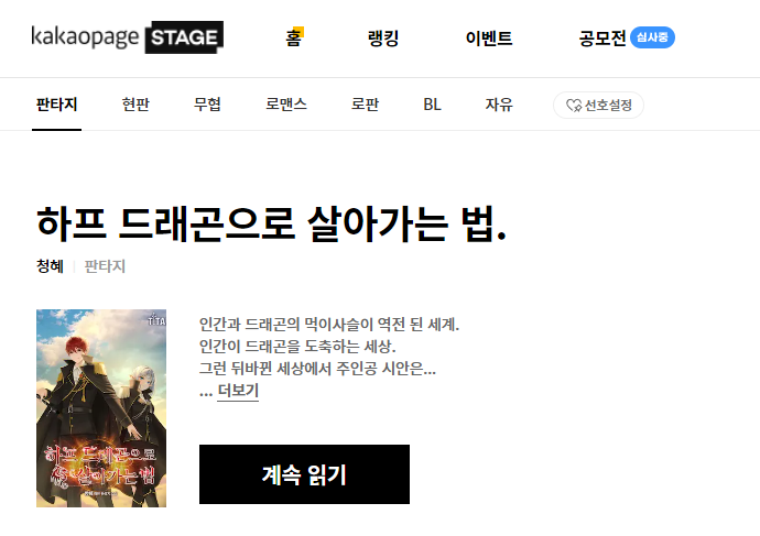 이 글 보시는 분들은 이제 카카오페이지에서 해당 작품을 만나볼 수 있겠네요.